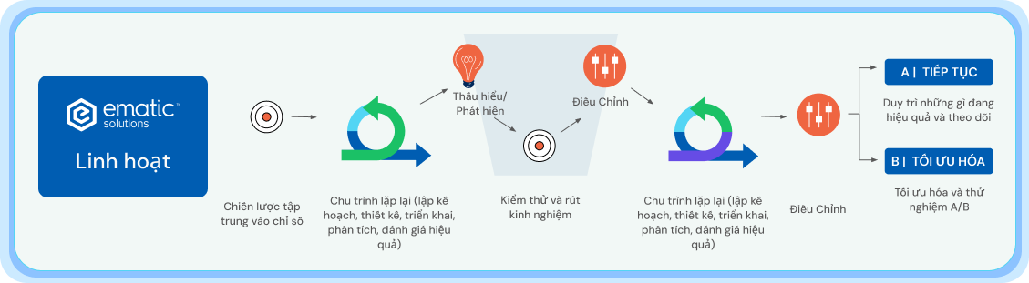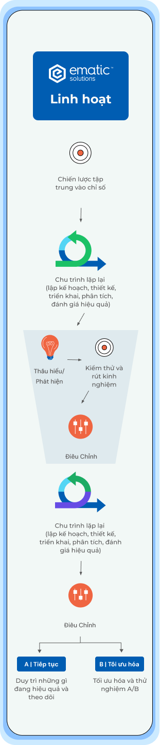 Chúng tôi không chỉ tập trung chuyển đổi mà còn xem xét đến toàn bộ hành trình khách hàng. Từ khám phá đến mua lại, chúng tôi sẽ tối ưu hóa từng bước trong hành trình khách hàng của bạn.