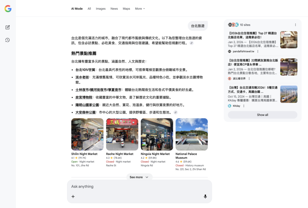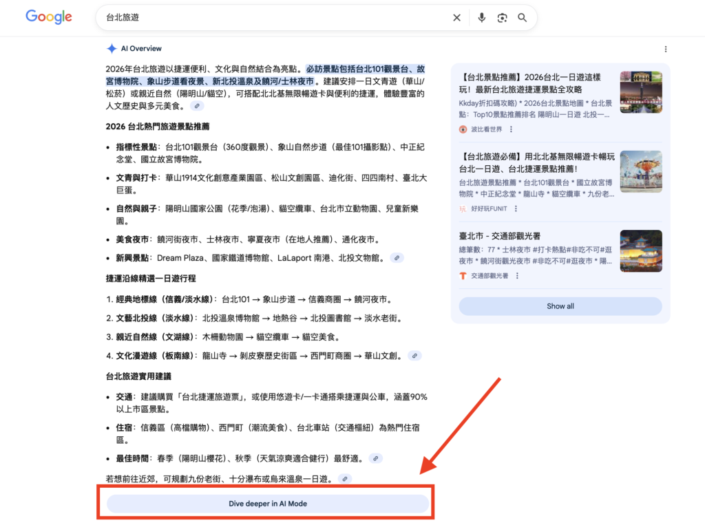 Google AI 模式能辨識適合出現在精選摘要(Featured Snippets)與豐富結果(Rich Results)的內容,結構清楚、資訊完整的頁面更容易被凸顯。