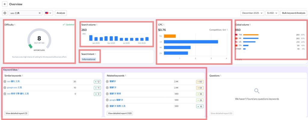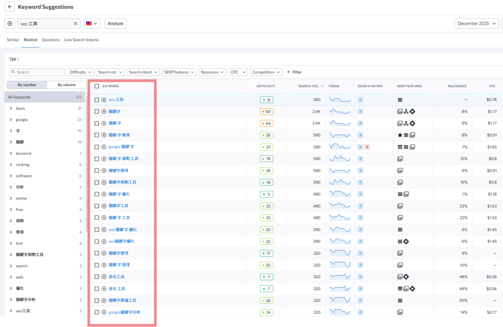 這些功能能幫助你更精準地進行關鍵字分析與內容布局。