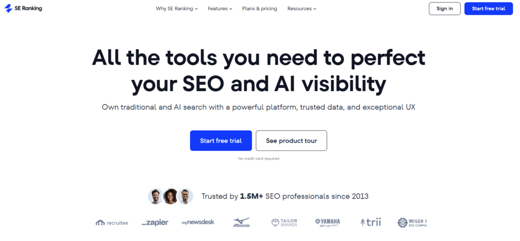 - SE Ranking 是性價比相當高的專業 SEO 工具,功能涵蓋 關鍵字規劃、長尾關鍵字挖掘、排名追蹤與網站健檢,並可整合 Google Search Console 與 GA 數據,進行完整的網站流量分析。