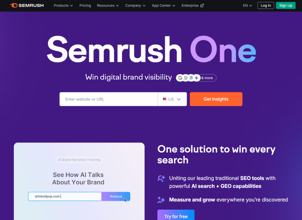 - SEMrush 是結合 SEO、廣告與內容行銷的全方位工具,在 關鍵字管理、競爭者分析與內容優化建議方面表現突出,也支援中文關鍵字資料。