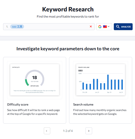 1. 進入Keyword Research 後搜尋想了解的關鍵字