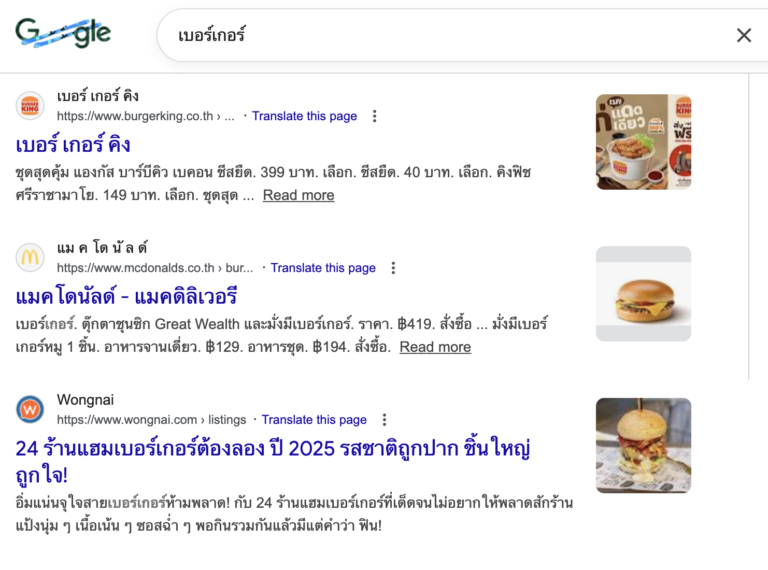 | ประสบการณ์ผู้ใช้ | คลิกเข้าเว็บไซต์เพื่อหาข้อมูล | ข้อมูลถูกสรุปไว้ในหน้าค้นหาโดยตรง |