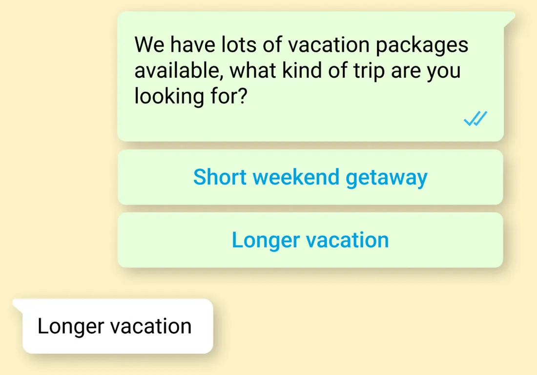 Saat berkomunikasi dalam skala besar, bisnis dapat mengirim pesan massal atau kampanye ke segmen pelanggan tertentu menggunakan template yang terstruktur dan resmi, seperti pemberitahuan pengiriman, pembaharuan janji temu, atau peringatan transaksi. Hal ini menjaga komunikasi tetap sesuai dengan kebijakan API WhatsApp Business sekaligus memastikan pembaruan pelanggan tepat waktu.