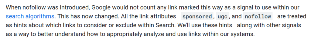 ✅ Pro Tip:Google announced in 2019 that it may treat nofollow links as “hints” rather than strict rules. That means it might decide to follow and count them, but there is no guarantee.