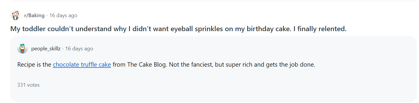 Example of a nofollow link from a comment in a Reddit post
