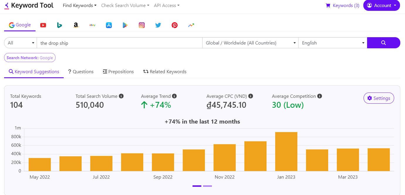 2.1. Keyword Tool.io: Gợi ý từ khóa phong phú