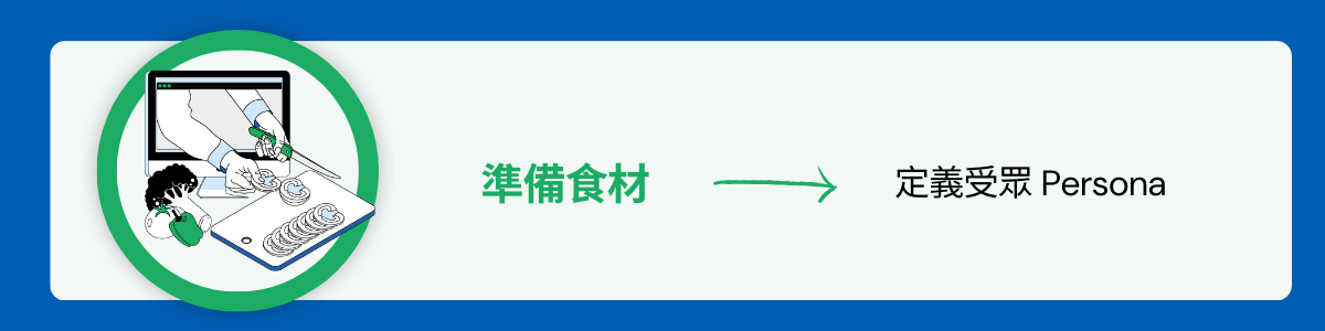 同樣地,內容行銷(Content Marketing)也是如此。我們會幫助您建立除了性別、年齡和興趣之外的多方面 Personas,從中鎖定適當的目標受眾,並根據他們的 Personas 和個人需求擬定吸引他們的策略(烹飪方法)。