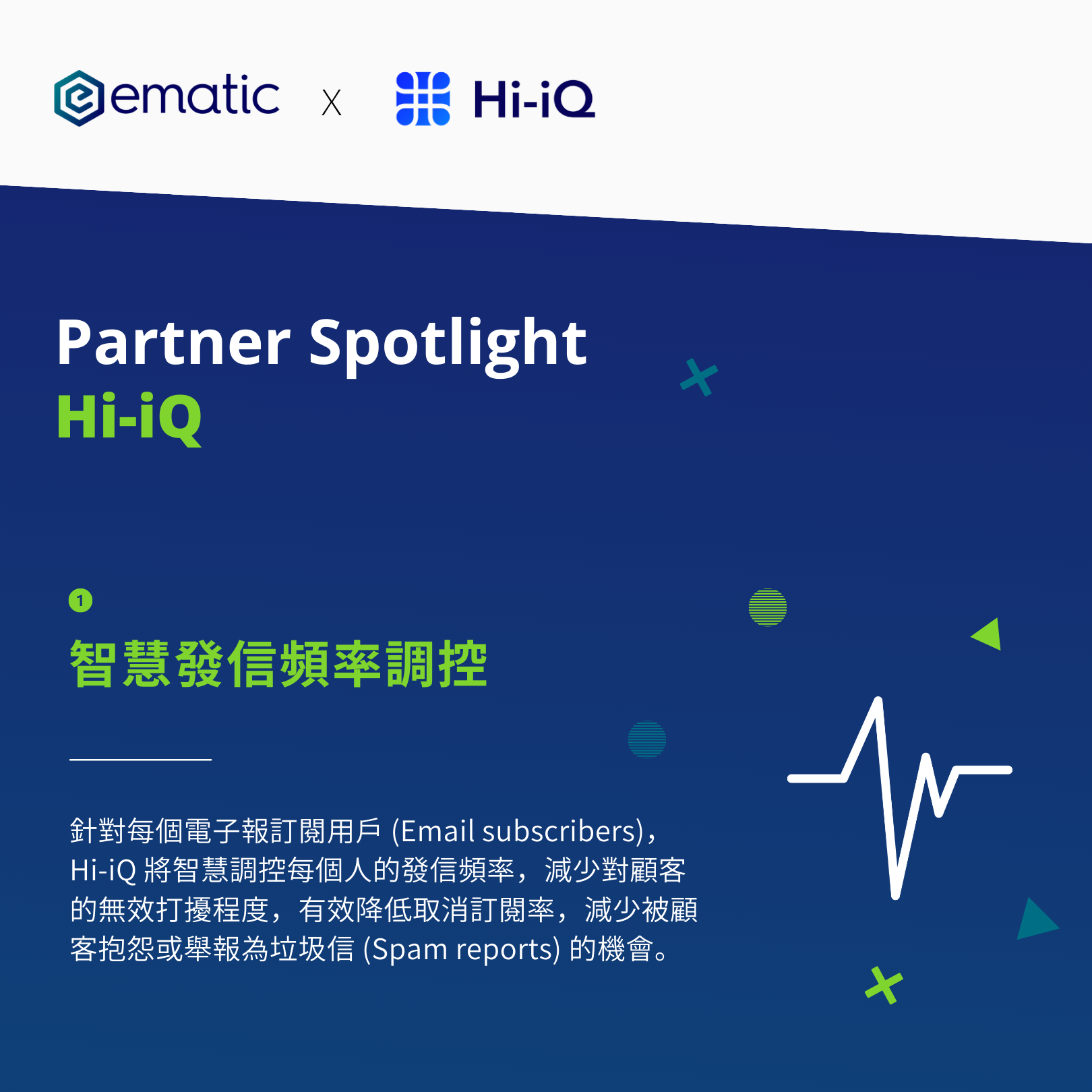 Hi-iQ 是一款強大的智慧演算工具,旨在幫助品牌優化數據資料庫、節省成本,並透過智慧發信頻率調控技術,以及識別訂閱用戶之互動等級,來延長電子報訂閱用戶的生命週期價值 (Lifetime value)。